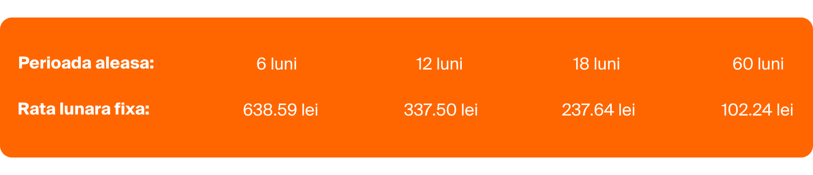 - Tu alegi numarul de rate: intre 6 si 60 luni