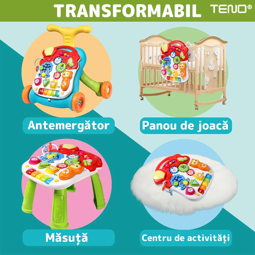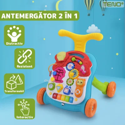 Antemergătorul Multifuncțional 2in1 Teno644 este un produs versatil și educativ, conceput pentru a susține dezvoltarea motorie și cognitivă a copiilor. Acest dispozitiv combină funcționalitățile unui antemergător cu cele ale unui centru de activități și joacă, oferind numeroase stimulente interactive și educative pentru copii.