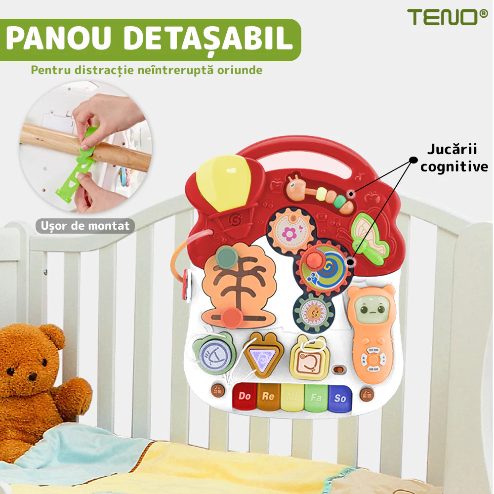 Panou educațional: Panoul inclus este special conceput pentru a-i învăța pe copii numere, forme și culori, ajutându-i să dezvolte abilități cognitive într-un mod distractiv.