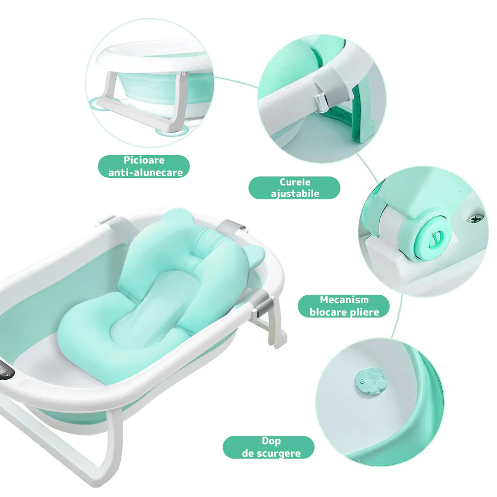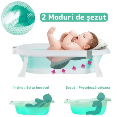 Cădița cu pernuță pentru bebeluși Teno291 este un produs modern și ergonomic, conceput pentru a face baia bebelușului mai confortabilă și sigură. Aceasta vine echipată cu funcții inovative și materiale de calitate, oferind siguranță și comoditate atât pentru bebeluș, cât și pentru părinți.