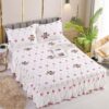Set lenjerie pentru pat dublu cu cearsaf cu volane formata din 3 Piese: