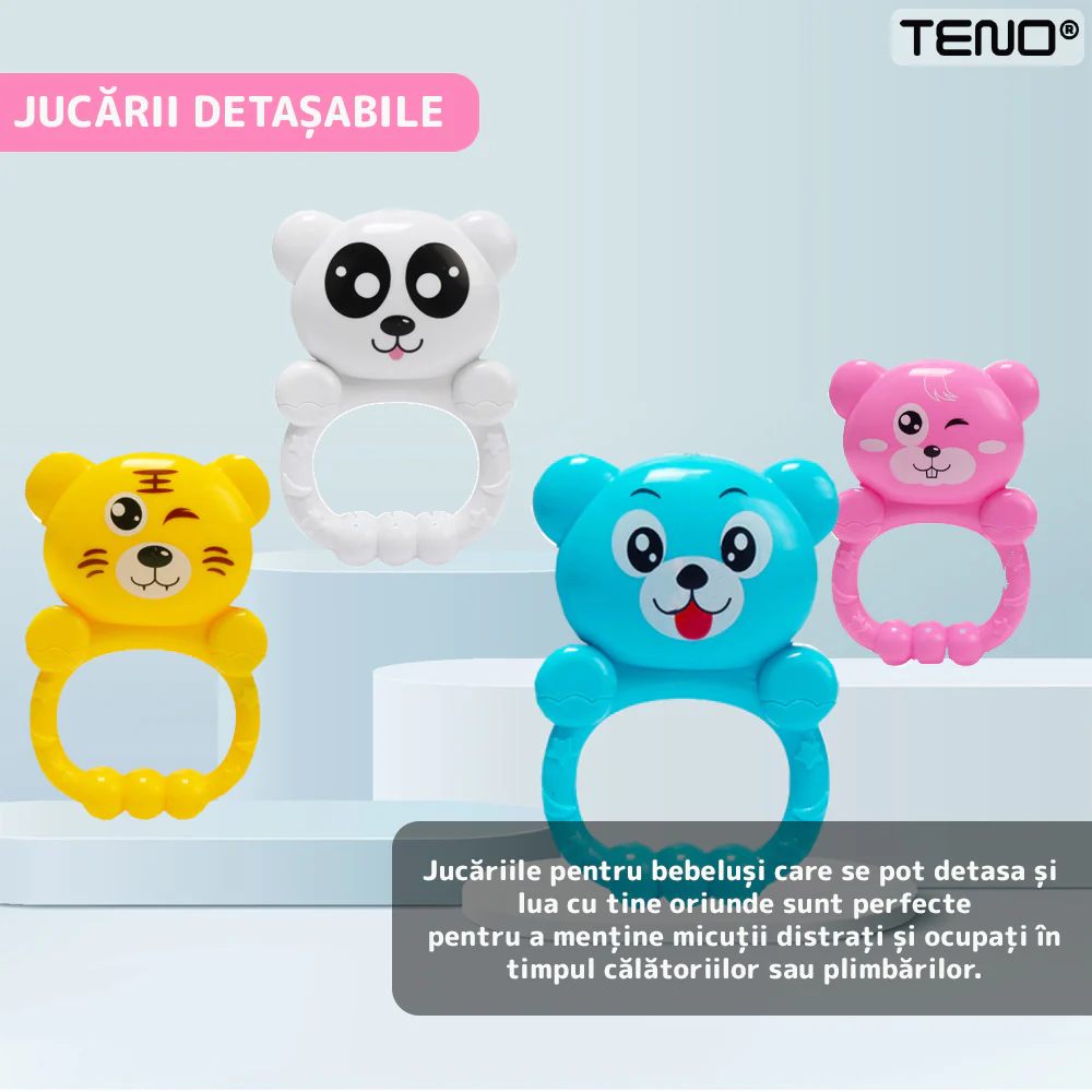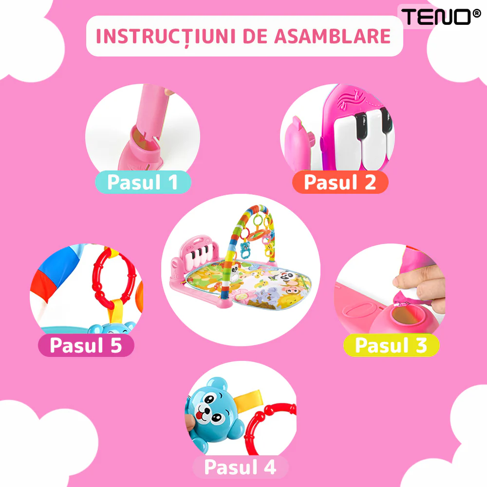 Centru de Activitati si Joaca Teno327 este o saltea interactivă complet echipată, destinată să stimuleze dezvoltarea cognitivă și fizică a bebelușului prin activități captivante și educative. Cu o gamă variată de funcții și jucării, centrul Teno415 creează un mediu sigur și distractiv pentru cei mici, adaptabil pe măsură ce aceștia cresc.