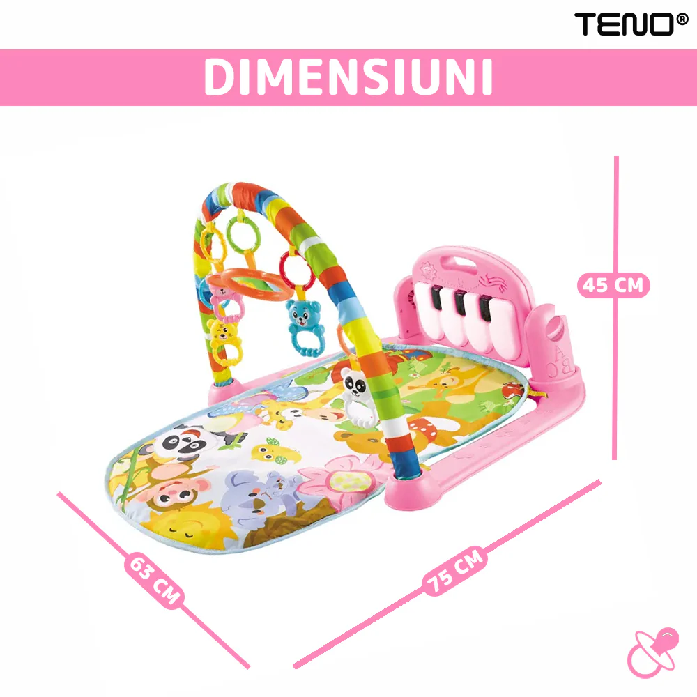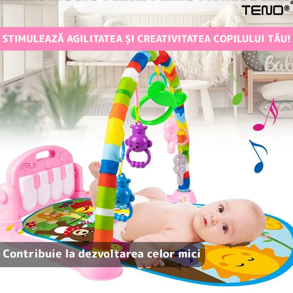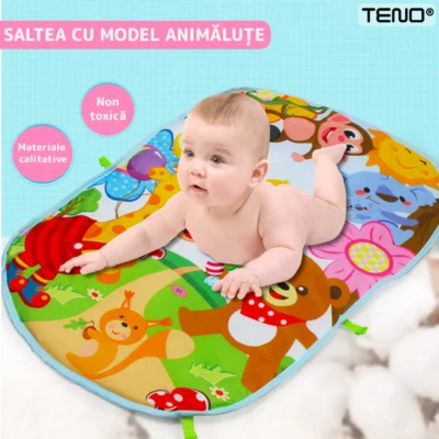 Saltea interactivă: Salteaua este moale și confortabilă, oferind o suprafață sigură pentru ca bebelușul să se joace și să descopere funcțiile interactive.