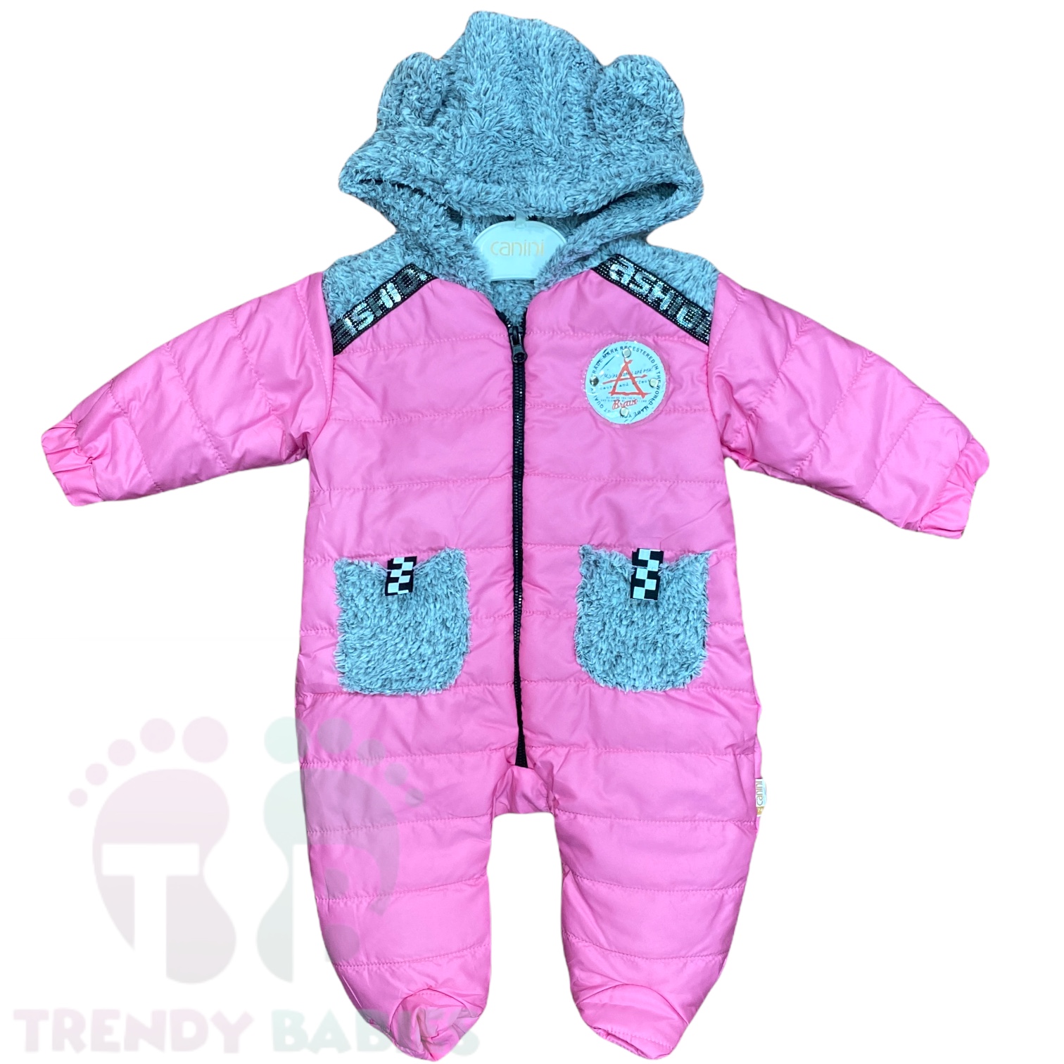 Salopeta bebe model confectionat din tesatura neteda.