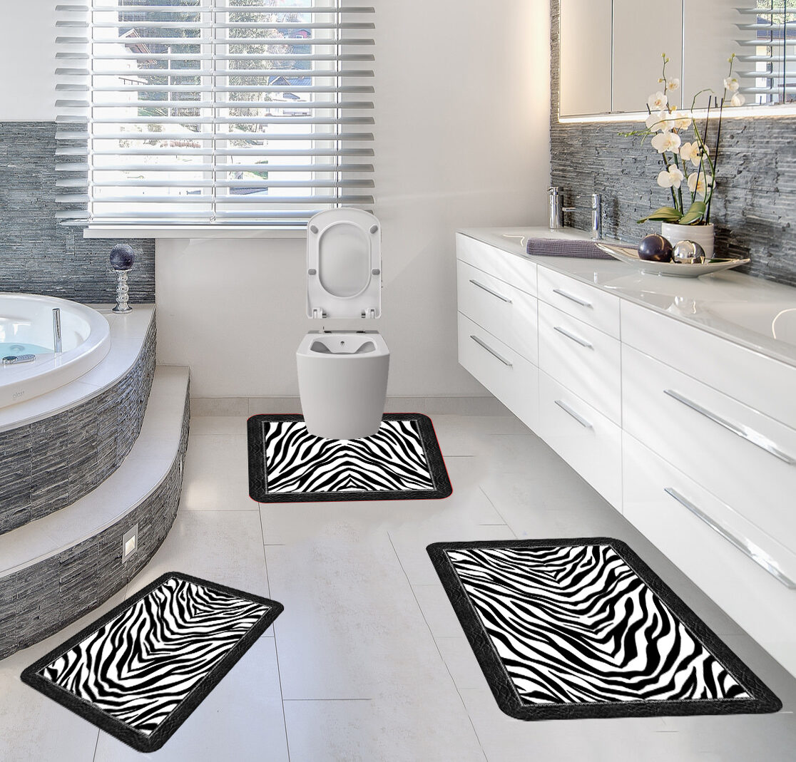 Covoare Pentru Baie, 3 Piese, 3D, Antiderapante, Alb/Negru, Animal Print, YS11565