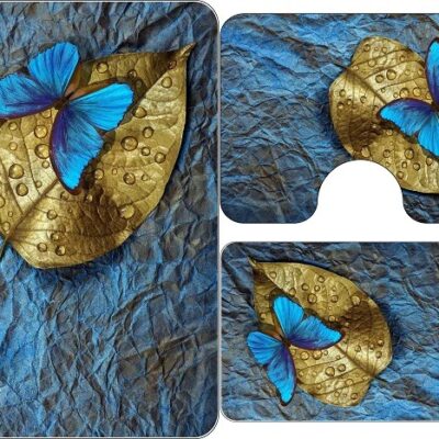 Covoare Pentru Baie, 3 Piese, 3D, Antiderapante, Albastru/Auriu, YS11561