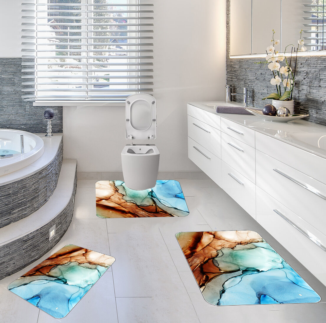 Covoare Pentru Baie, 3 Piese, 3D, Antiderapante, Bleu/Maro, YS11557