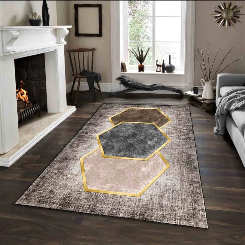 Covor Antiderapant, Design Hexagon, Maro/Gri/Auriu, YS11809