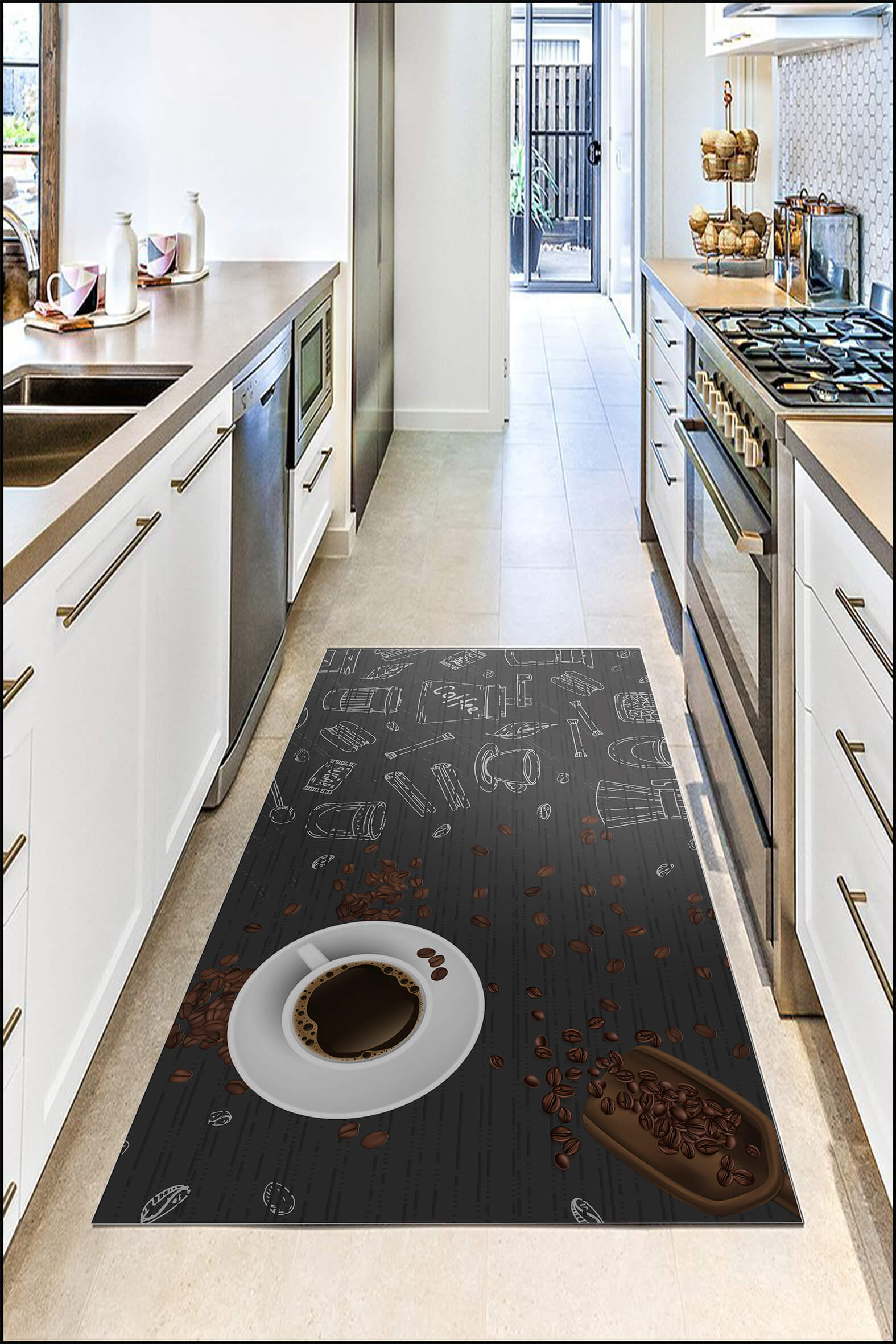 Covor Bucatarie Cafea, Model Boabe Cafea, Maro/Negru, Antiderapant, YS307