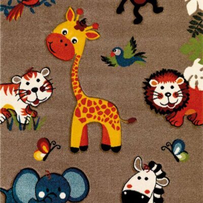 Covor Copii Animale, Multicolor, Zebra/Elefant/Girafa/Leu/Maimuta, Antiderapant