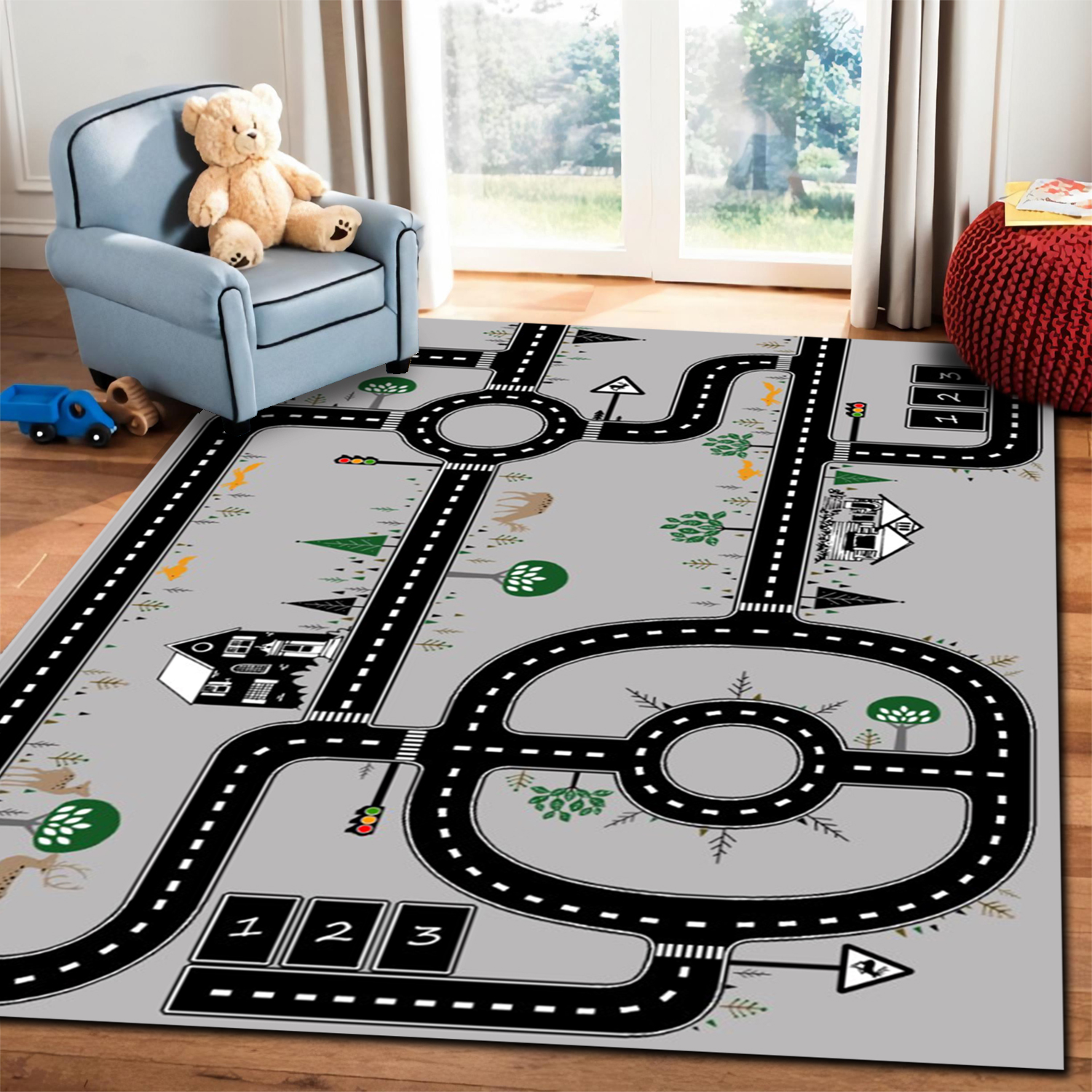 Ofera-i copilului tau un spatiu pentru joaca confortabil, sigur și usor de curatat, cu ajutorul acestui covor. Decorat cu motive vesele, masinute, acest covor moale cu grosime de 1 cm poate oferi locul perfect de joaca pentru bebelusi si copii mici. In acest spatiu copiiii se pot relaxa, juca, pot invata sa mearga sau pur și simplu se pot bucura de un pui de somn.