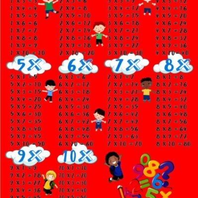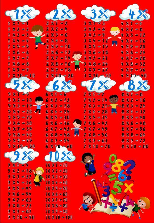Covor Tabla Inmultirii, Rosu/Alb, 1-10, Antiderapant