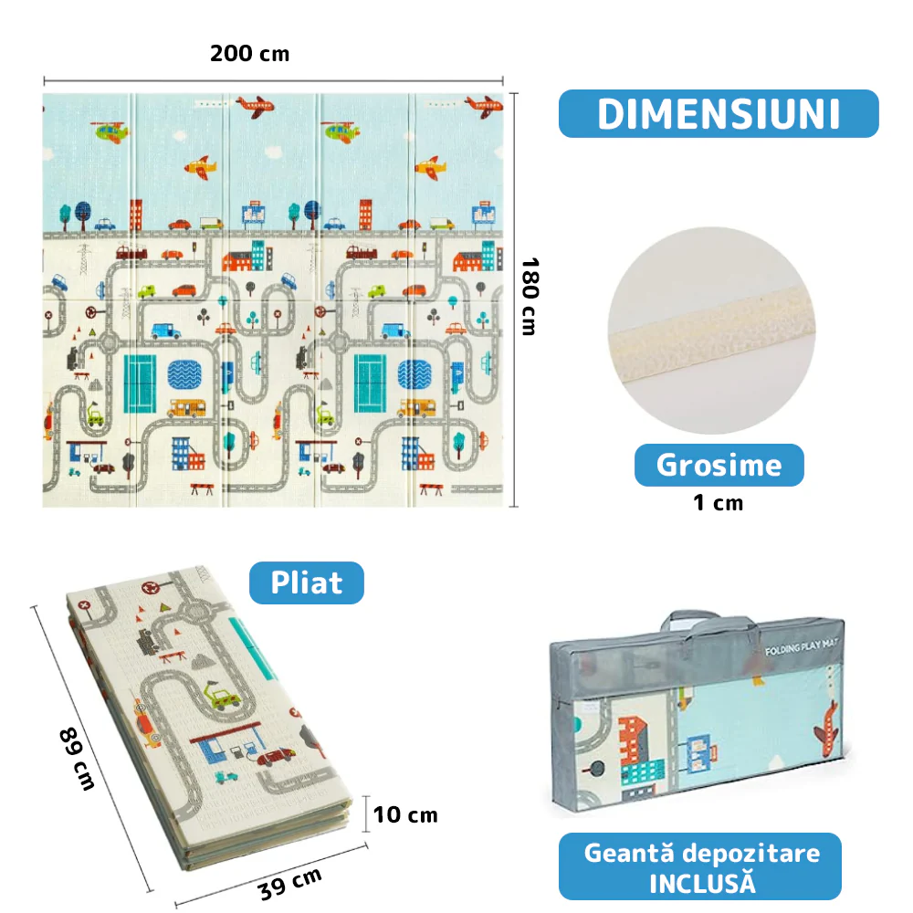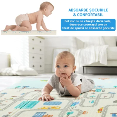 Covorașul de Joacă pentru Copii este creat pentru a oferi un spațiu sigur, confortabil și educativ în care cei mici să se joace și să exploreze.