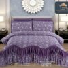 Cuvertura pentru pat dublu confectionata din Bumbac 100% cu volanase din 3 piese. Imprimeurile sunt realizate cu cele mai noi tehnologii, astfel nu se decoloreaza la spalare daca se respecta instructiunile de intretinere. Pachetul include: