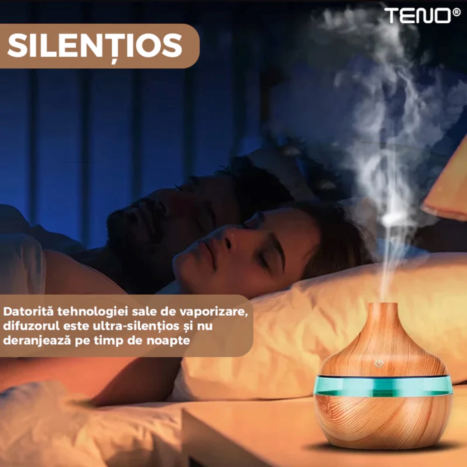 - Funcționare Silențioasă: Bucurați-vă de o atmosferă liniștită, deoarece difuzorul funcționează extrem de silențios, neîntrerupându-vă activitățile sau somnul.