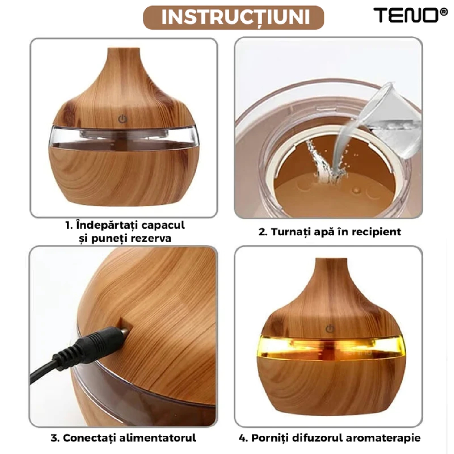 - Funcție de Umidificare: Pe lângă difuzarea de arome, acest dispozitiv umidifică aerul, creând un mediu mai sănătos și mai plăcut, în special în timpul sezonului rece.