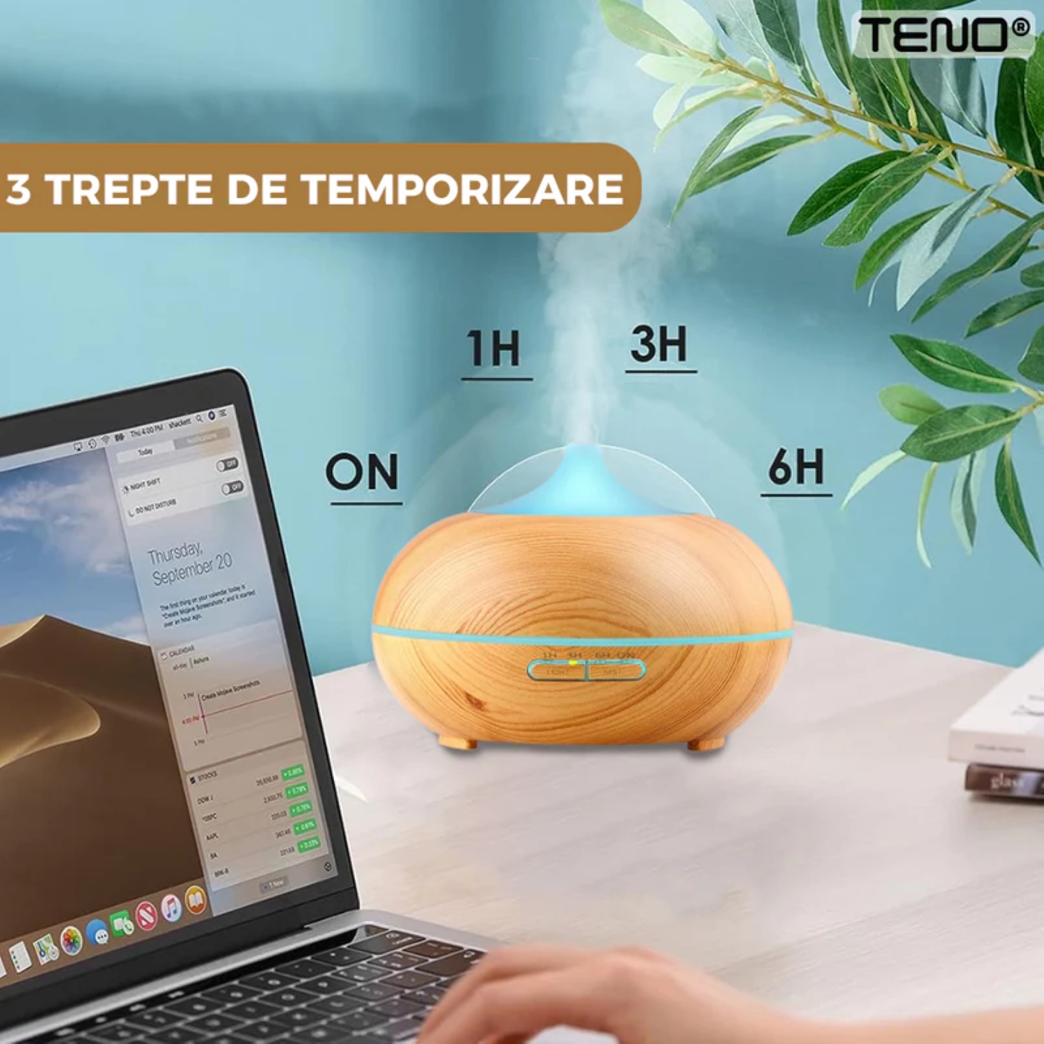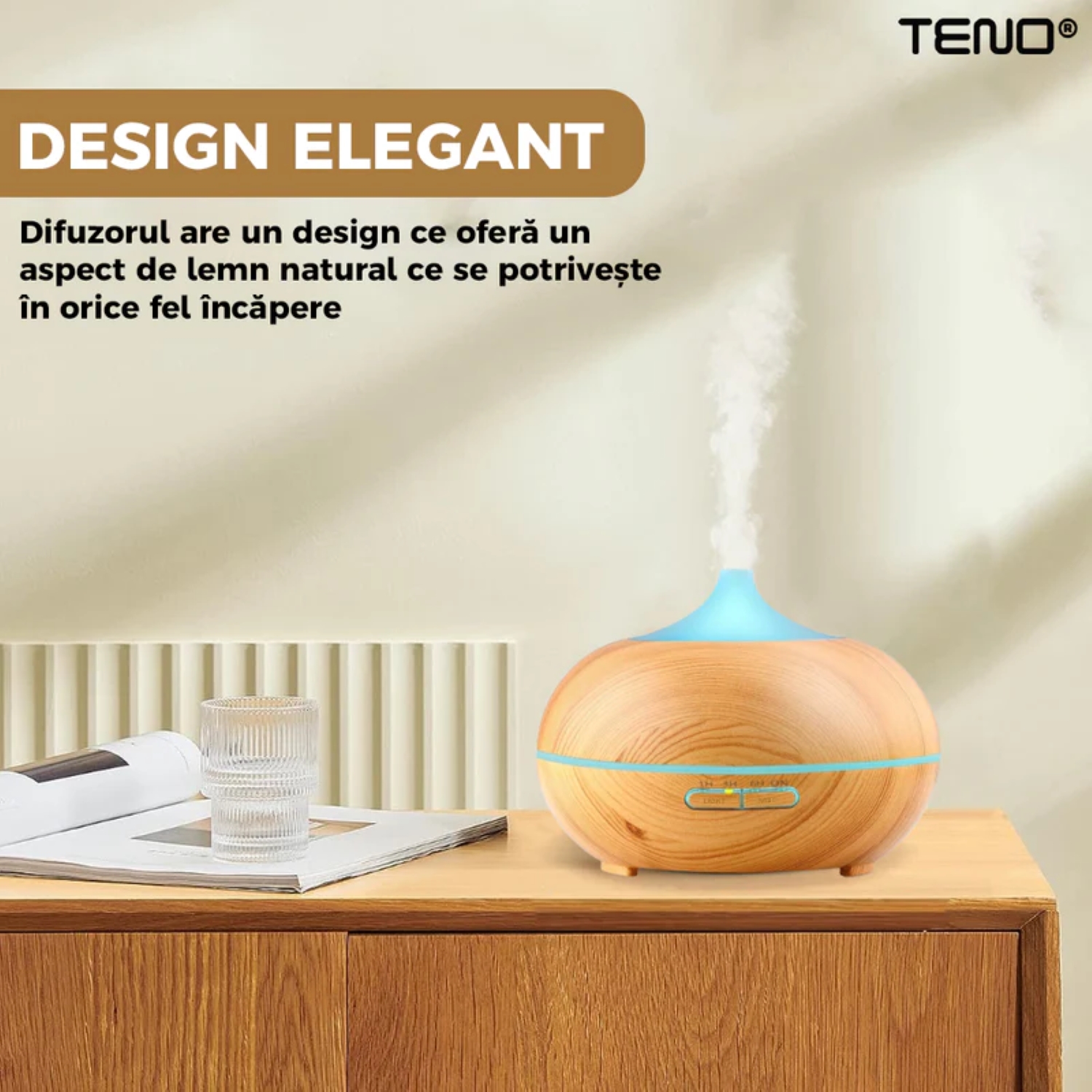 - Capacitate Generoasă: Cu o capacitate de 500ml, difuzorul oferă o autonomie suficientă pentru a parfuma și umidifica chiar și încăperi mai mari.