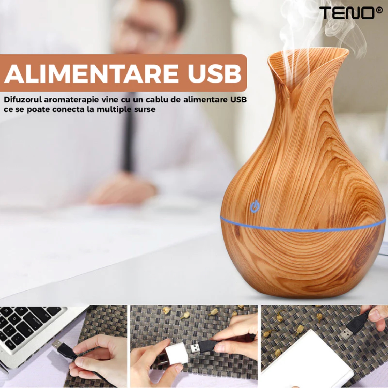 - Purificarea aerului: Difuzorul elimină particulele de praf din aer și creează un mediu mai curat și mai sănătos.
