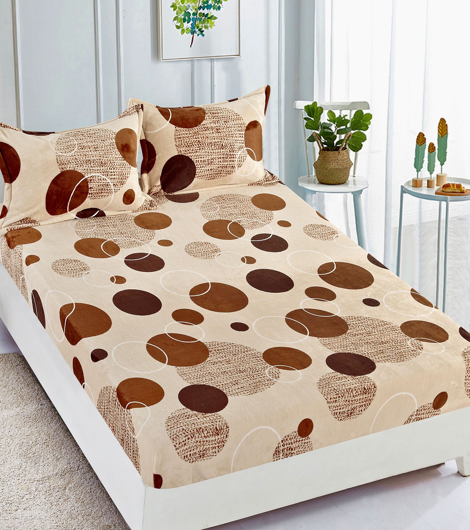 Husa de Pat Cocolino, 180 x 200 cm, Cercuri, Crem/Maro, J18056