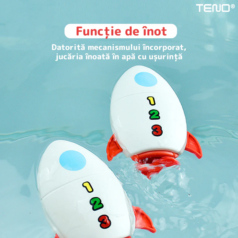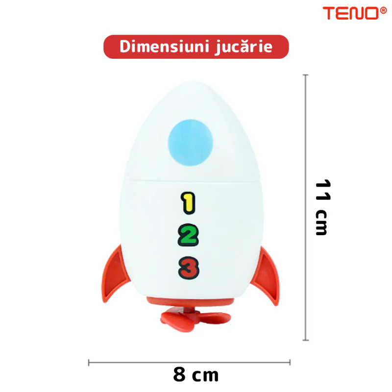 Această jucărie de baie interactivă, în formă de rachetă, este concepută special pentru a aduce bucurie și distracție în timpul băii. Cu un design viu colorat și un mecanism ingenios, această rachetă va deveni rapid partenerul de joacă preferat al copilului tău.