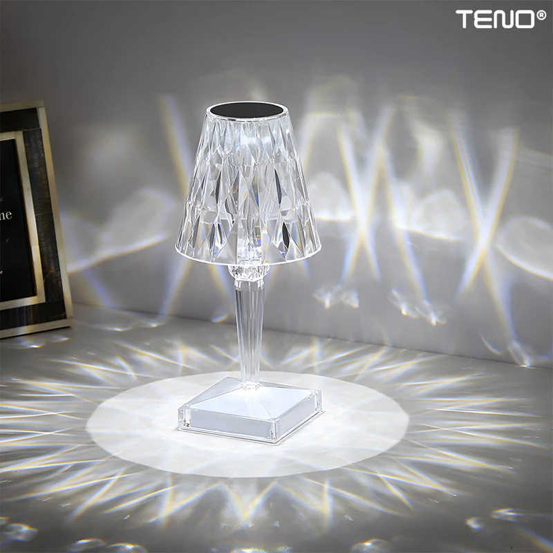 - Design elegant: Corpul lampii este realizat din cristal acrilic de înaltă calitate, oferind o strălucire subtilă și un joc frumos de lumini și umbre.