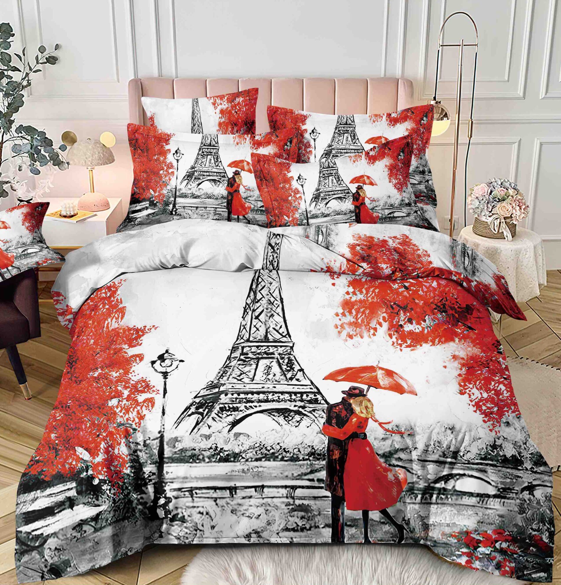 Lenjerie cu ELASTIC, Pat 1 Persoana, 4 Piese, Bumbac Finet, Indragostiti, Multicolor, J24333-ELASTIC