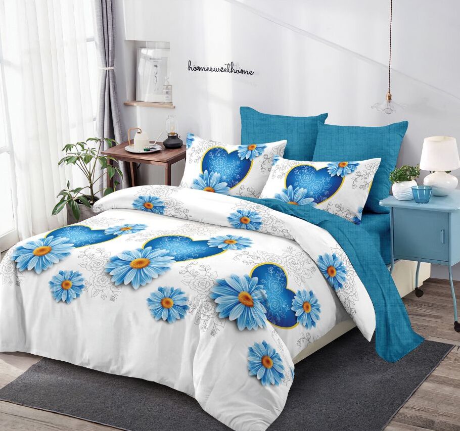 Lenjerie de pat, Bumbac Finet, 6 Piese, Inimi, Albastru/Alb, C24375