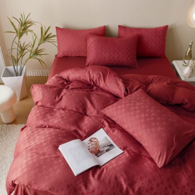 Lenjeria pentru pat tip Jacquard este intruchiparea rafinamentului, fiind o lenjerie de lux, cu broderie si materiale foarte bine alese ( bumbac 100% si finet.). Aceasta lenjerie Jacquard este moderna si rafinata, aducand o lumina noua oricarui tip de locuinta, iar aspectul boem si confortabil al acestei lenjerii este dat de broderia superba si de tesaturile fine, cu luciu, placute la atingere. Lenjeria de pat Jacquard este ideala pentru a conferi o nota de eleganta si delicatete oricarui dormitor, materialele folosite fiind deosebit de placute la atingere garantand un somn linistit si total satisfacator.