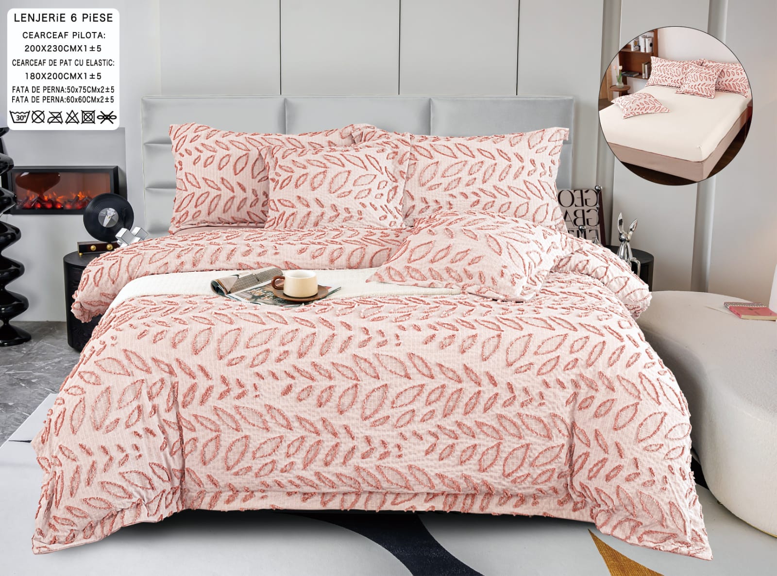 - Lenjeria de pat cu 6 piese din bumbac fin cu in grofat lățos este alegerea perfectă pentru un somn confortabil și relaxant. Realizată dintr-un amestec de bumbac fin și in, această lenjerie oferă o senzație plăcută la atingere, fiind moale, dar în același timp rezistentă și durabilă.