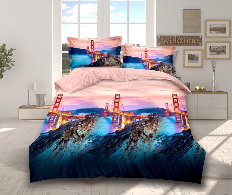 Lenjerie pat dublu, 2 Persoane, Bumbac Satinat 3D, 4 Piese, Pod, Multicolor, ST14670