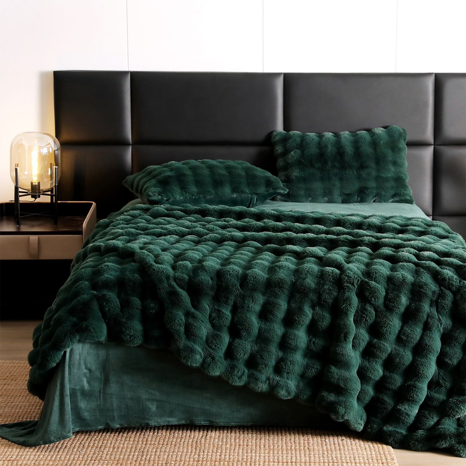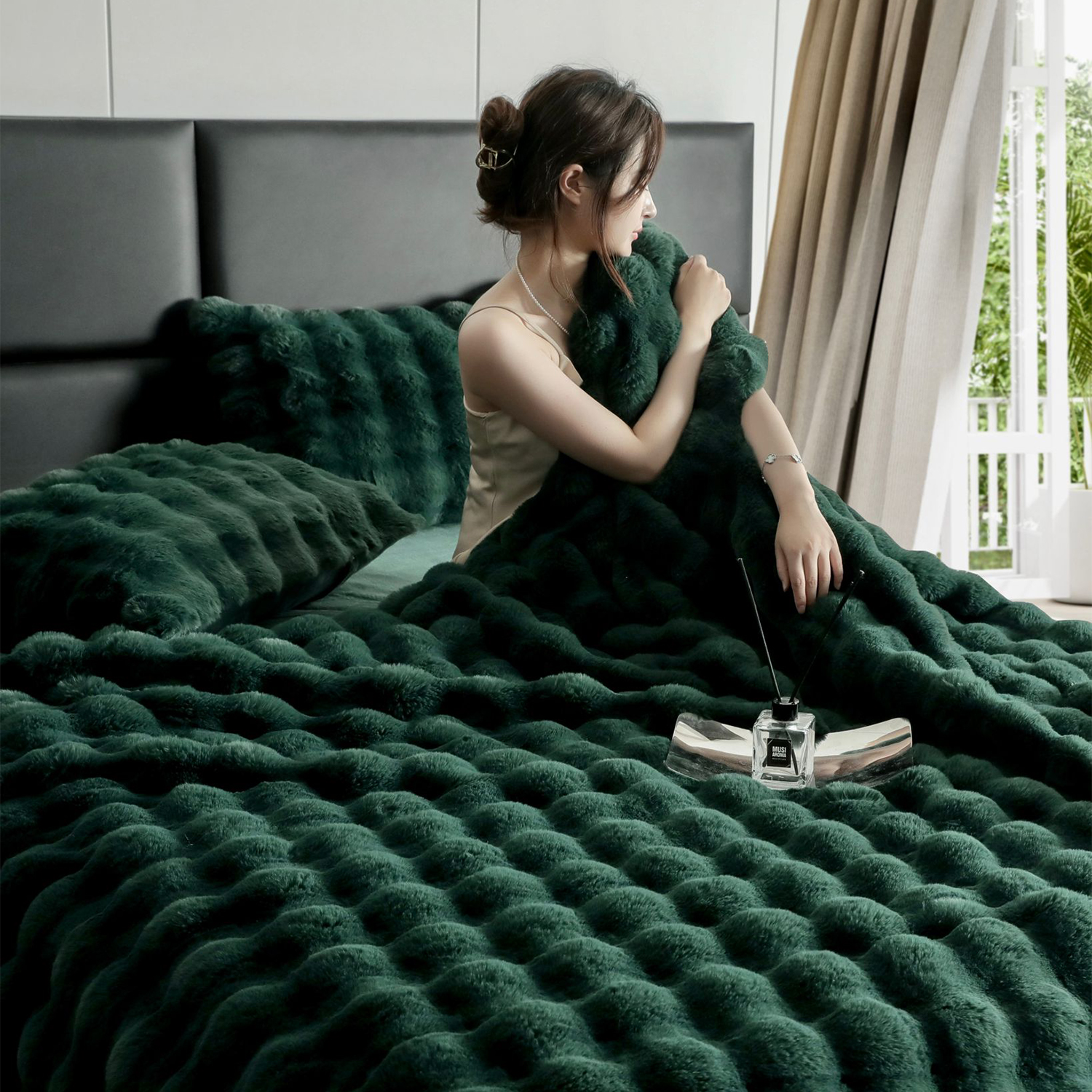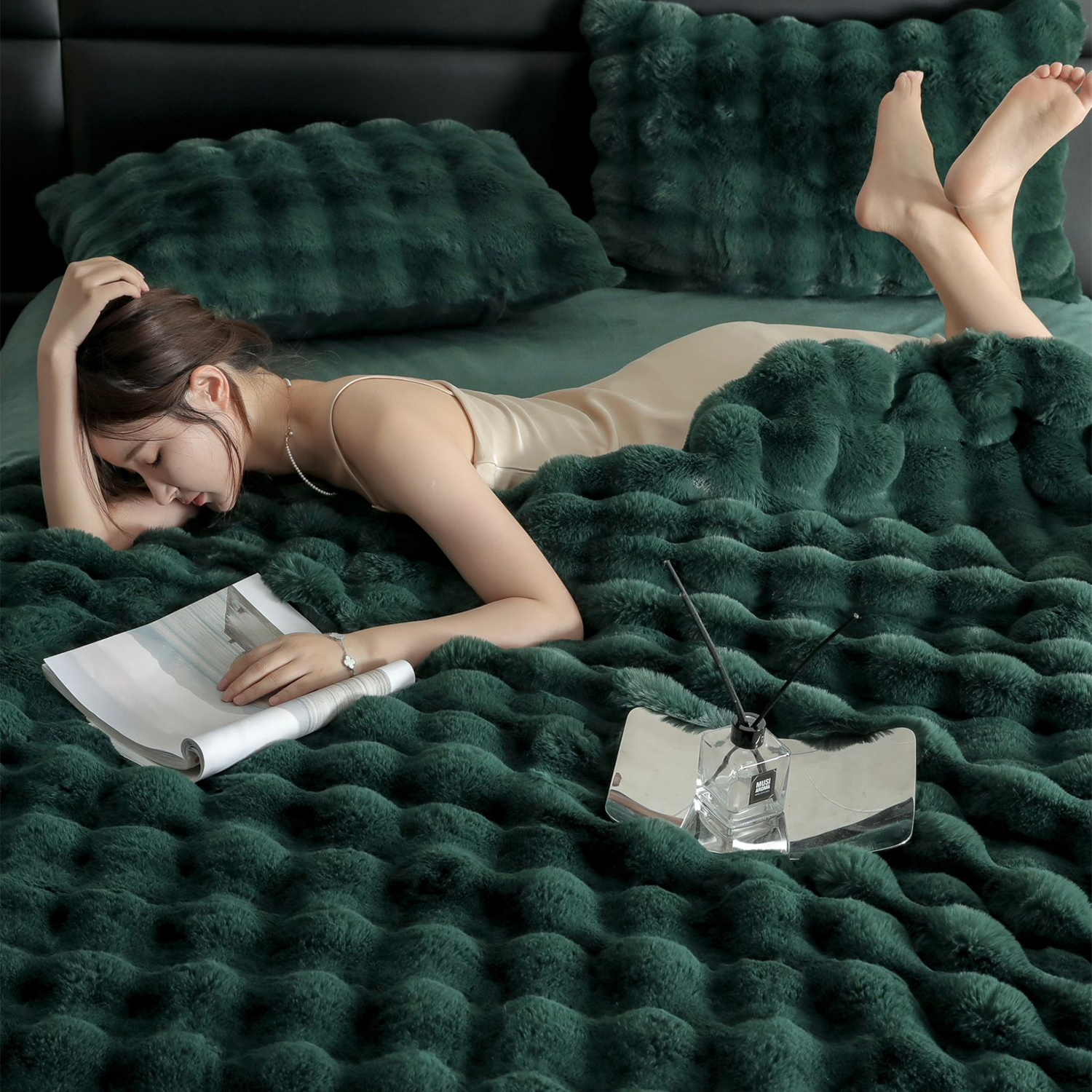 Lenjeria de pat dublu compusă din 6 piese cu blanită de iepure este un set luxos de lenjerie de pat care oferă confort suprem și căldură. Fiecare set include un cearceaf pentru patrua/pilota, un cearceaf de pat, două fețe de pernă 50×70 +5cm și două fețe de pernă 50×70, toate finisate cu o blanită moale și pufoasă de iepure pentru un somn odihnitor și o estetică elegantă. Această lenjerie de pat adaugă o notă de rafinament și calitate la orice dormitor.