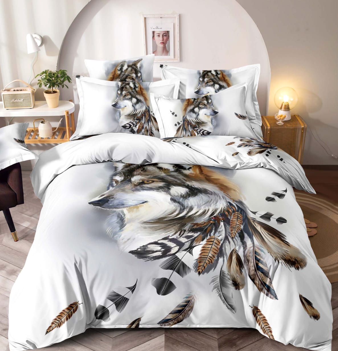 Lenjeriile de pat dublu cu imprimeu sunt realizate folosind reactivi astfel ca nu vor iesi culorile la spalare. Materialul este bumbac finet-satinat cu o greutate de 215 gr / mp.