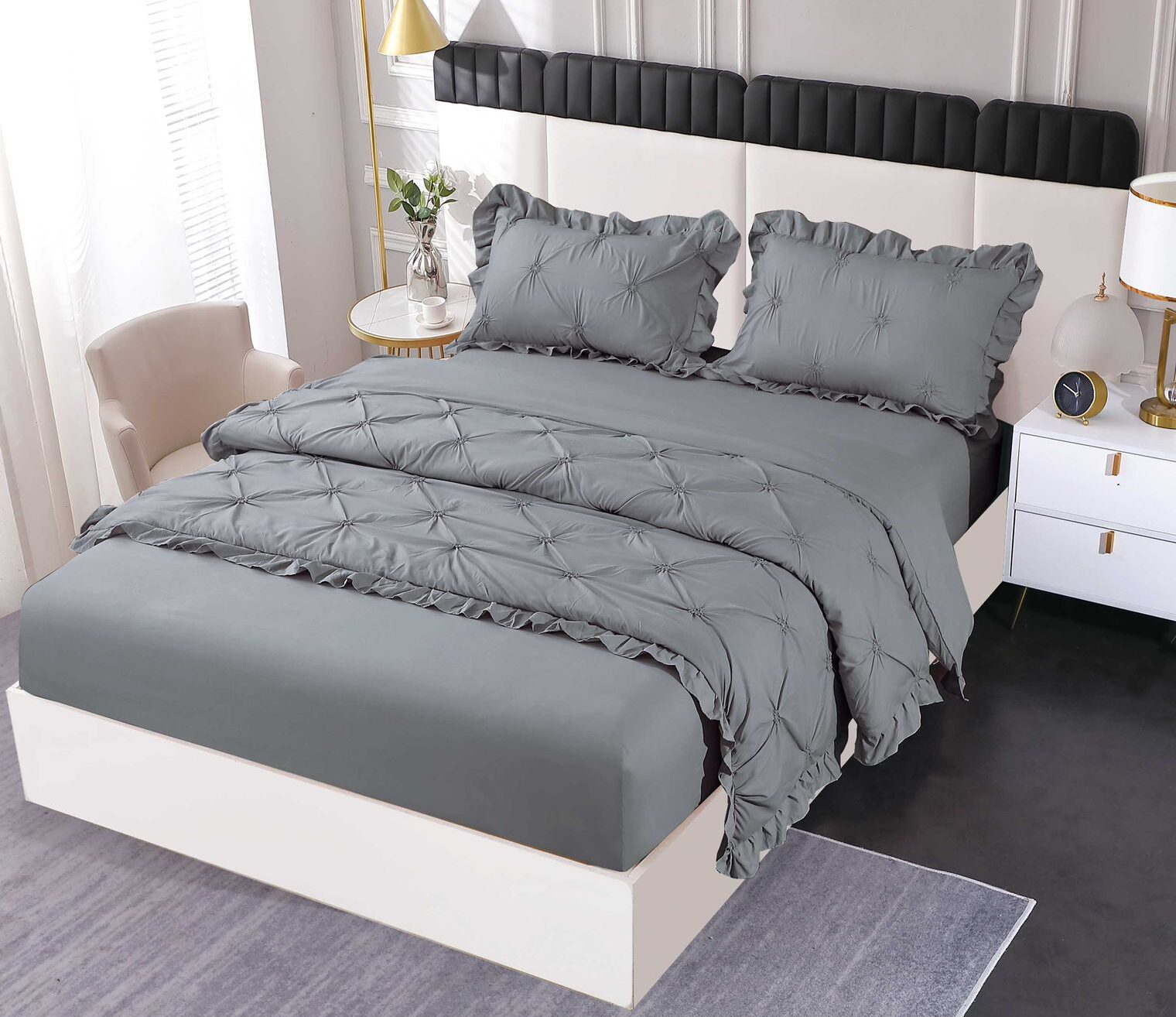 Lenjerie Pat Pliuri Si Volans, Bumbac Finet , UNI, 4 Piese, Gri Deschis, HR24253-Elastic
