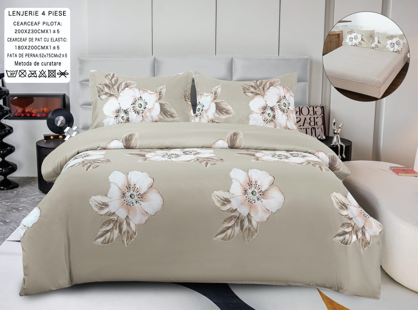 - Lenjerie de pat din bumbac satinat cu 4 piese pentru pat de 2 persoane
