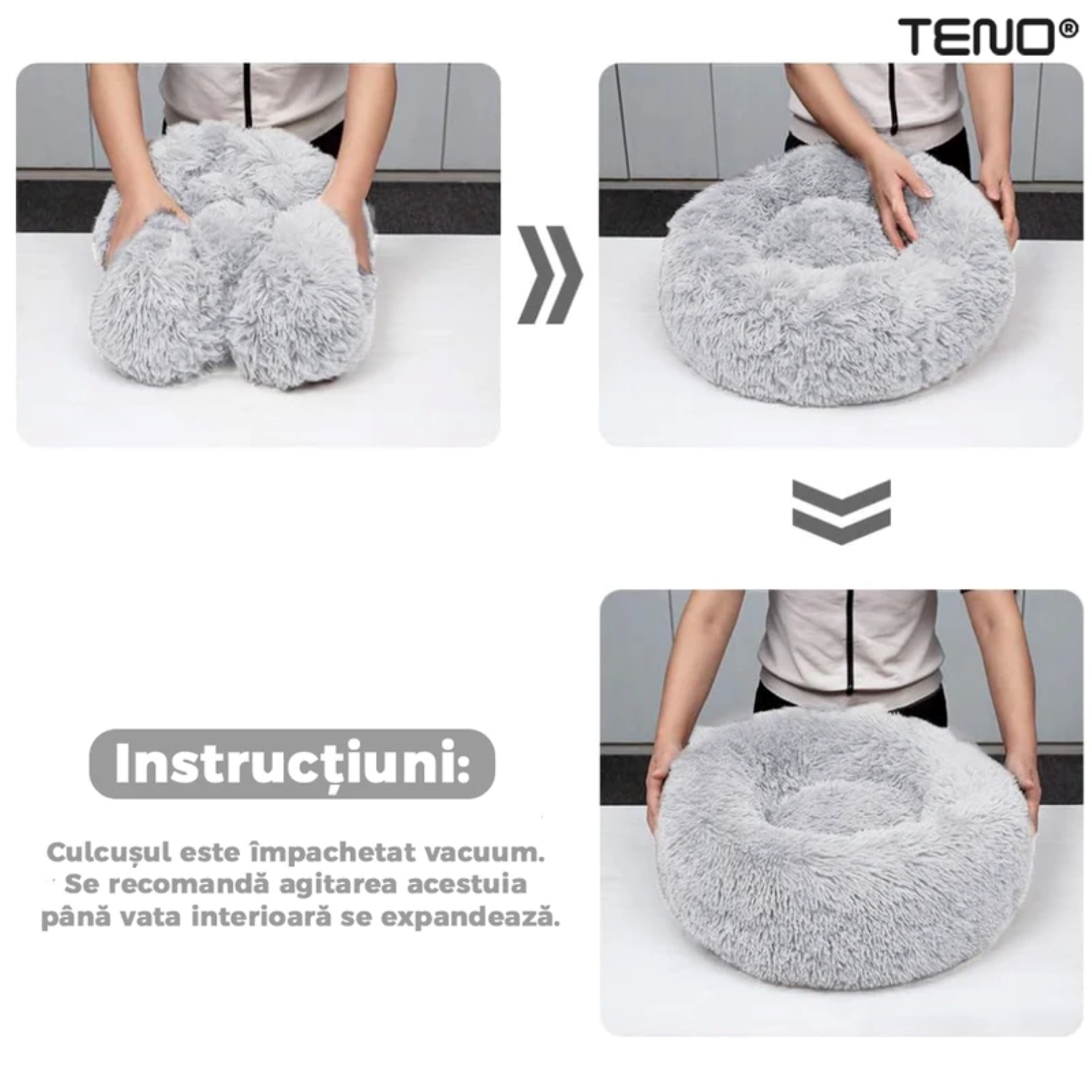 - Material premium: Confecționat din materiale moi, pufoase și calduroase, patul asigură un confort maxim, imitând senzația unei îmbrățișări calde.