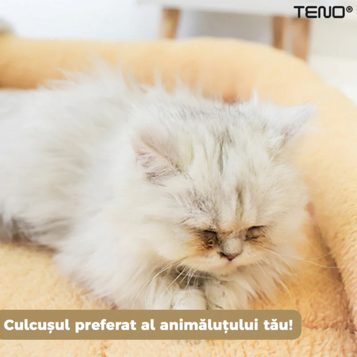 - Baza anti-alunecare: Datorită bazei anti-alunecare, patul rămâne fix în același loc, indiferent cât de mult se mișcă animalul tău.