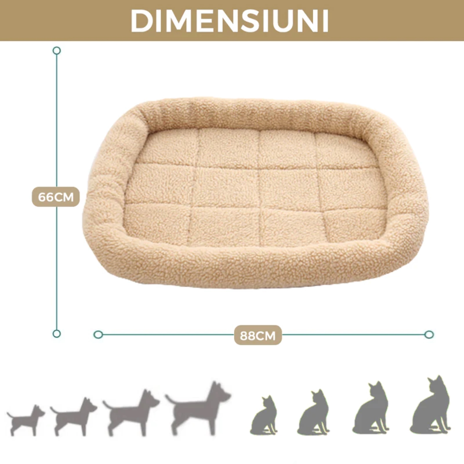 - Dimensiuni generoase: Cu dimensiuni de 88×60 cm, patul oferă suficient spațiu pentru ca animalul tău să se întindă și să se relaxeze.