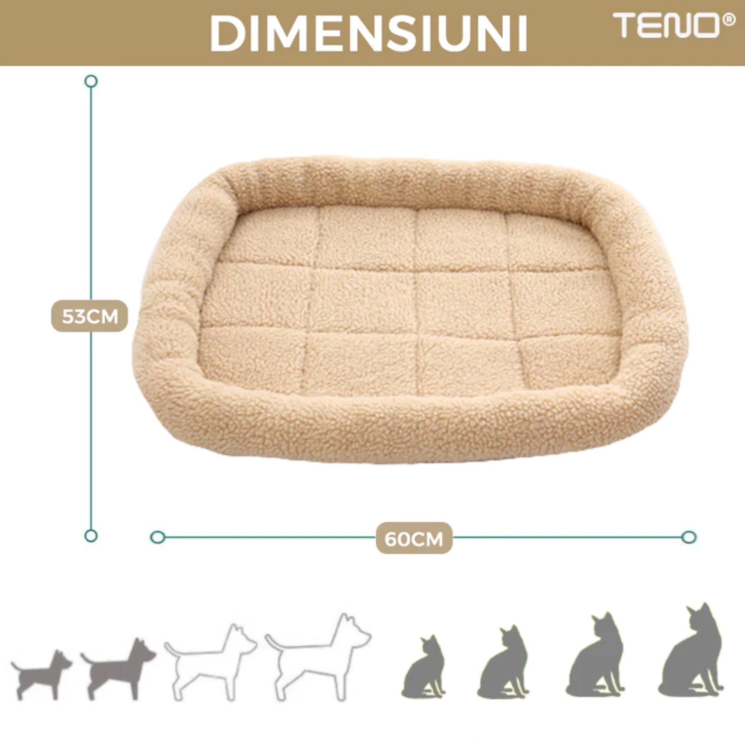 - Dimensiuni ideale: Cu dimensiuni de 60×53 cm, acest pat este perfect pentru câini și pisici de talie mică și medie, oferindu-le suficient spațiu pentru a se întinde și relaxa.