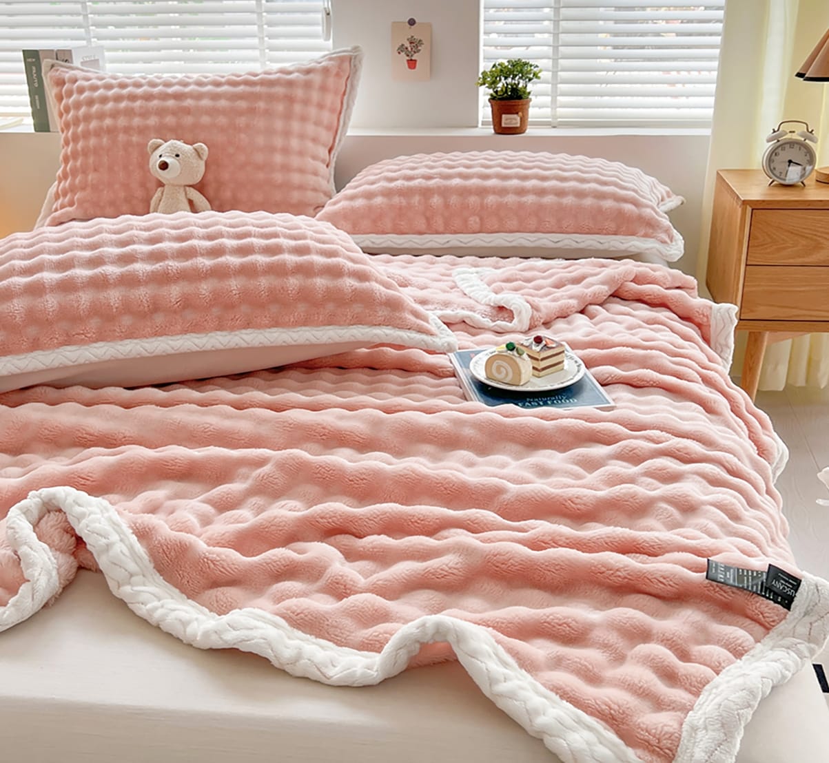 În general, aceste pături sunt ușor de întreținut, necesitând doar spălare ușoară și aerisire regulată pentru a-și păstra aspectul proaspăt. În concluzie, o pătură care ofera căldură, confort și eleganță, fără a dăuna mediului sau animalelor. Aceasta poate fi o alegere ideală pentru decorarea camerei dvs. și pentru a vă bucura de confort în serile reci de iarnă.