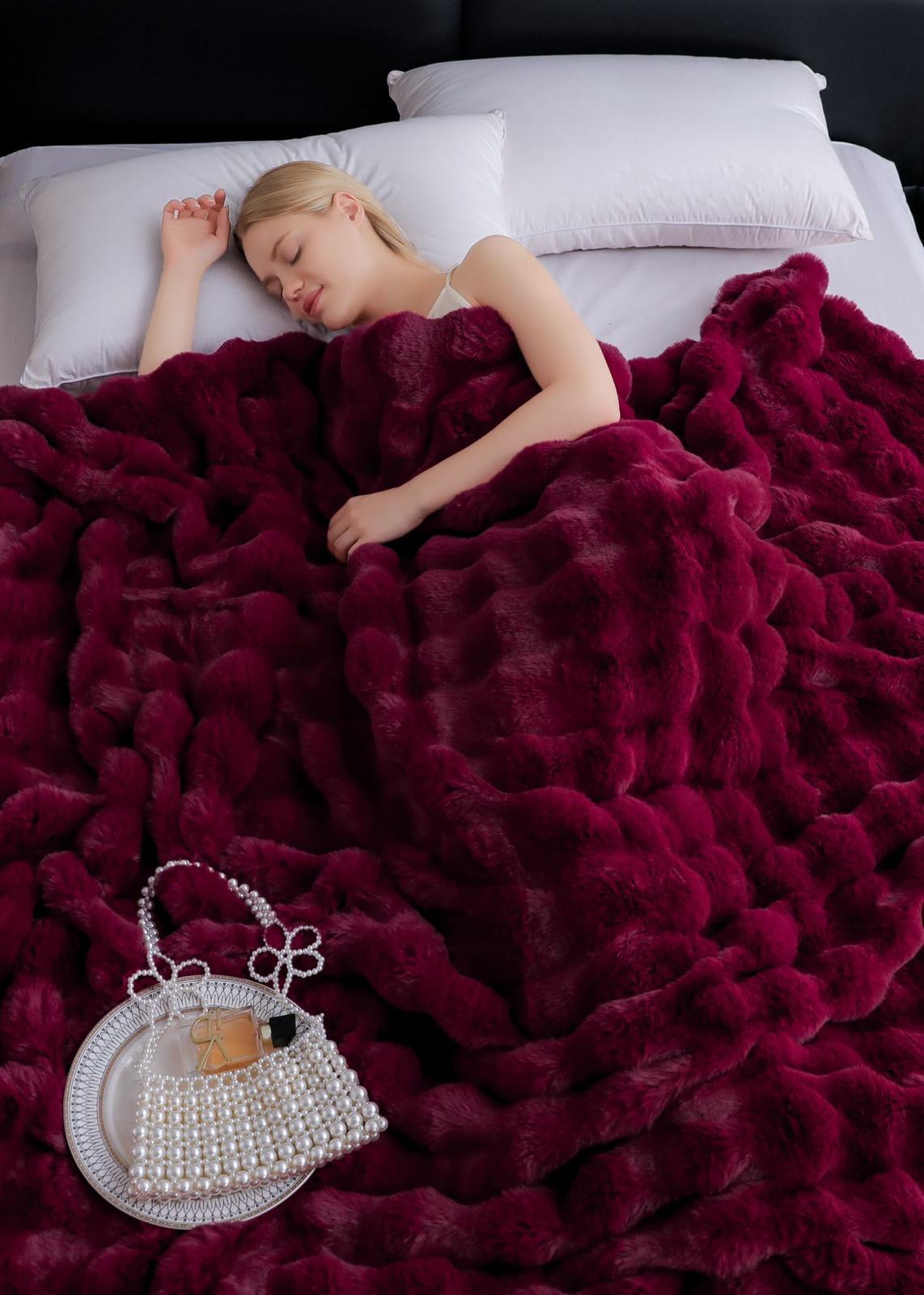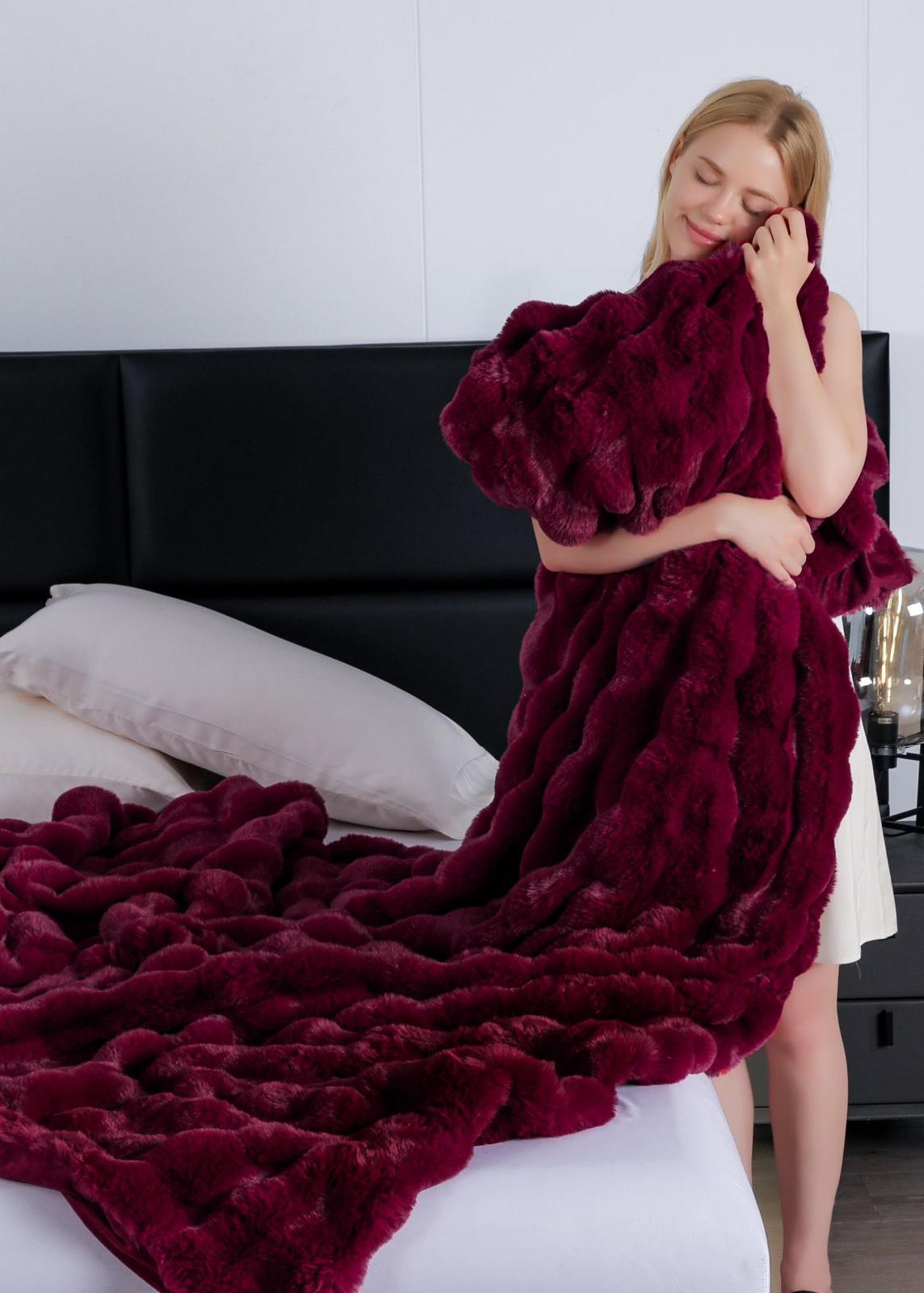 Patura cu blanită de iepure cu fermoar oferă confort suprem și căldură. O blanită moale și pufoasă de iepure pentru un somn odihnitor și o estetică elegantă. Această patura adaugă o notă de rafinament și calitate la orice dormitor.