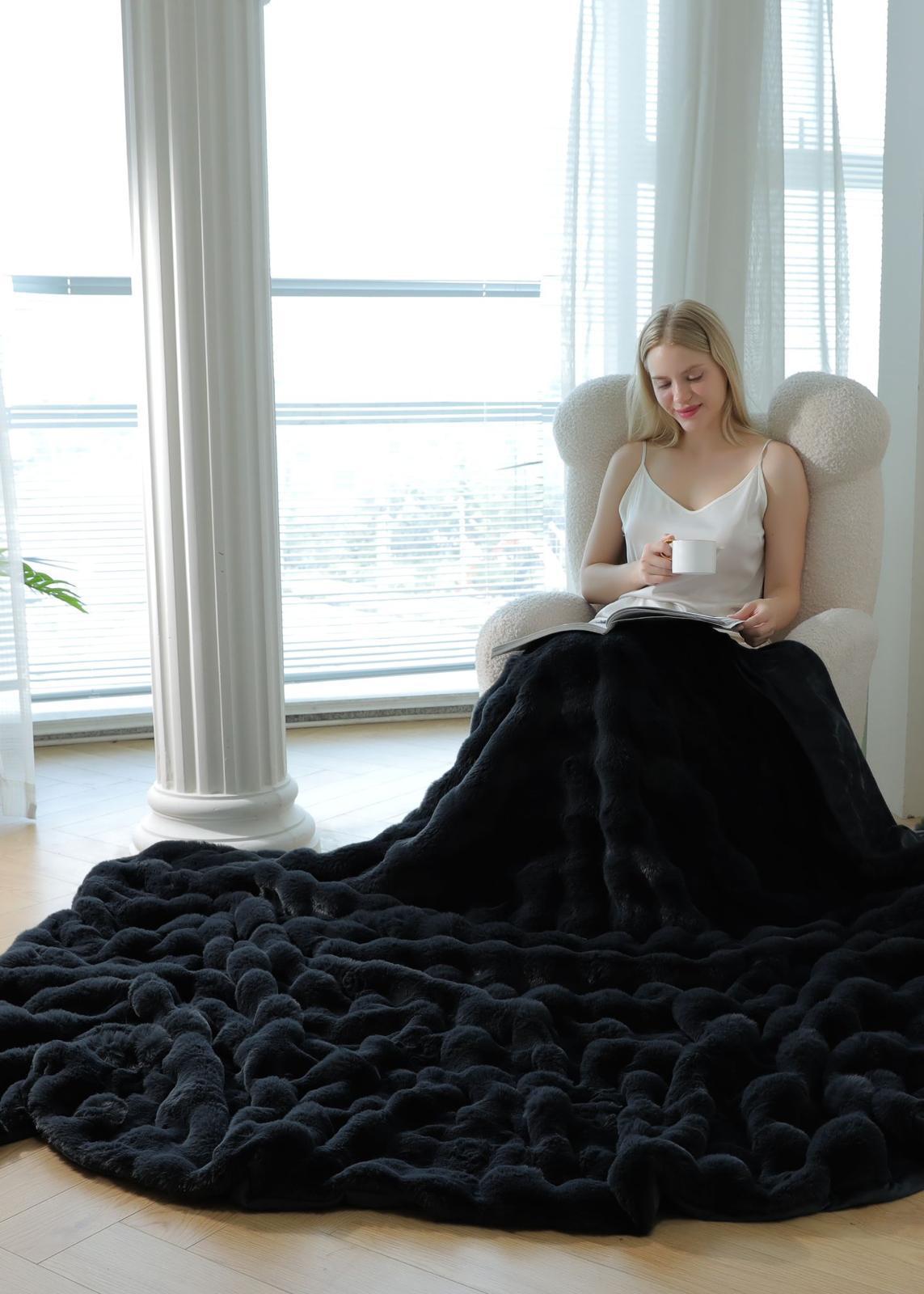 Patura cu blanită de iepure cu fermoar oferă confort suprem și căldură. O blanită moale și pufoasă de iepure pentru un somn odihnitor și o estetică elegantă. Această patura adaugă o notă de rafinament și calitate la orice dormitor.