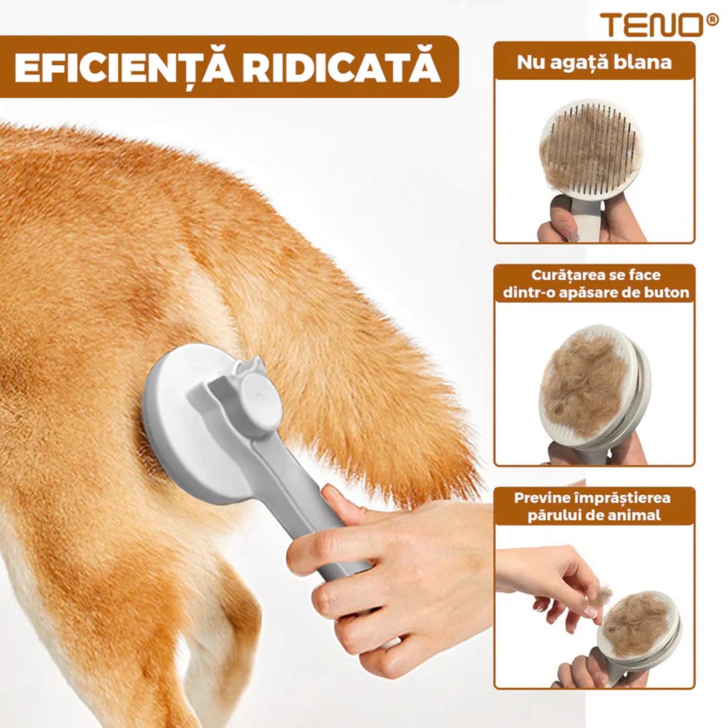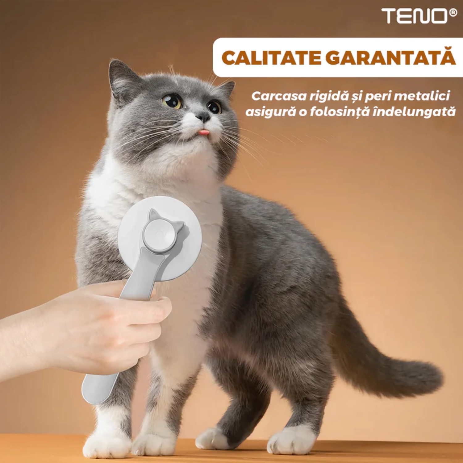 Peria pentru animale pe care o descrii este un instrument esențial pentru menținerea sănătății și frumuseții blănii animalului tău de companie. Cu funcții precum descălcirea blănii, prevenirea năpârlirii și un buton practic de auto-curățare, această perie face din îngrijirea animalului tău o sarcină ușoară și plăcută.