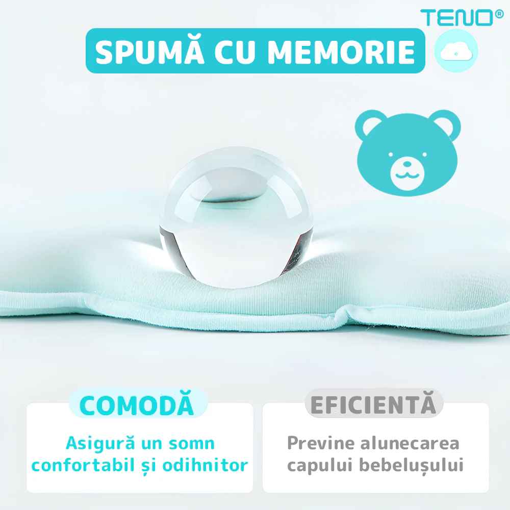 Fabricată din spumă cu memorie de înaltă calitate, perna se adaptează formei capului bebelușului, oferindu-i suportul perfect și un nivel excelent de confort. Spuma cu memorie permite pernei să revină la forma inițială după fiecare utilizare, asigurând durabilitate și eficiență maximă în timp.