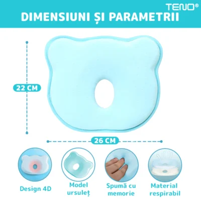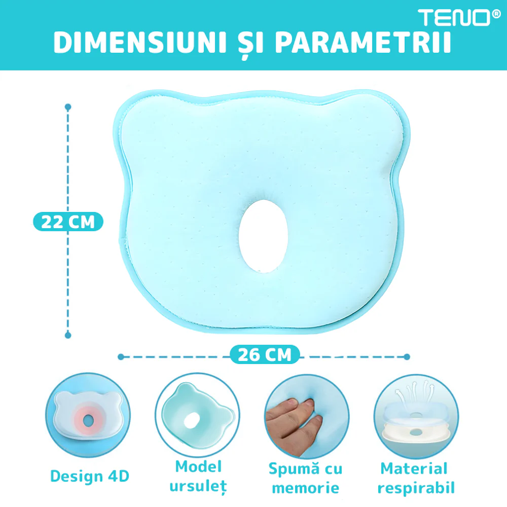 Perna pentru Bebelusi, model ursuleț este un produs creat cu grijă pentru a susține sănătatea și confortul micuțului tău. Susține dezvoltarea naturală a capului bebelușului (Anti-plagiocefalie).