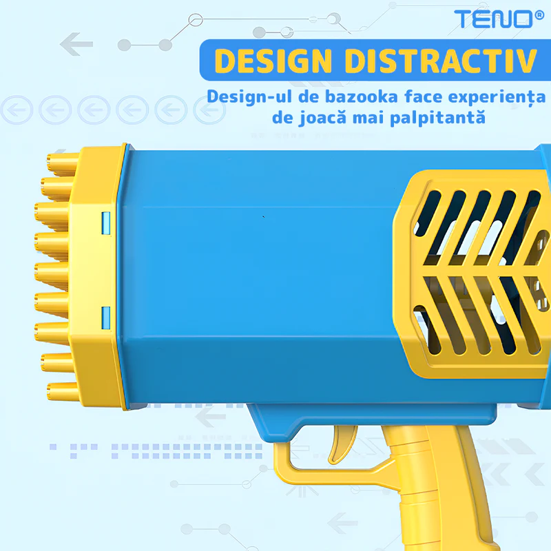 - 34 orificii pentru bule: Numărul mare de orificii asigură o producție abundentă de bule, creând astfel o atmosferă magică și plină de culoare.