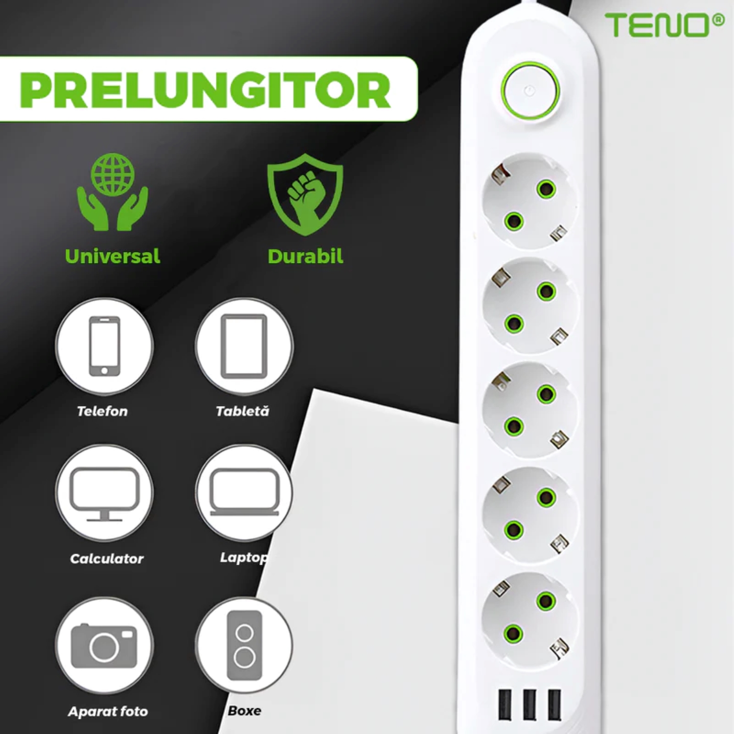 - 5 prize: Oferă suficient spațiu pentru a conecta simultan până la 5 dispozitive electrice, cum ar fi laptopuri, telefoane, încărcătoare, lămpi sau alte echipamente.