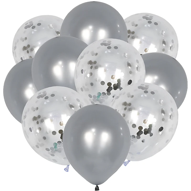 Setul de 10 baloane cu confetti este alegerea perfectă pentru a adăuga o notă de distracție și eleganță oricărui eveniment. Culoarea argintie a baloanelor, combinată cu strălucirea confettiului, creează un contrast dramatic și un efect vizual deosebit.