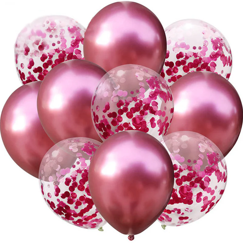 Setul de 10 baloane cu confetti roz este alegerea perfectă pentru a adăuga o notă de eleganță și strălucire oricărui eveniment. Culoarea lor delicată și confetti-ul strălucitor vor crea un efect vizual deosebit și vor adăuga o notă de distracție.
