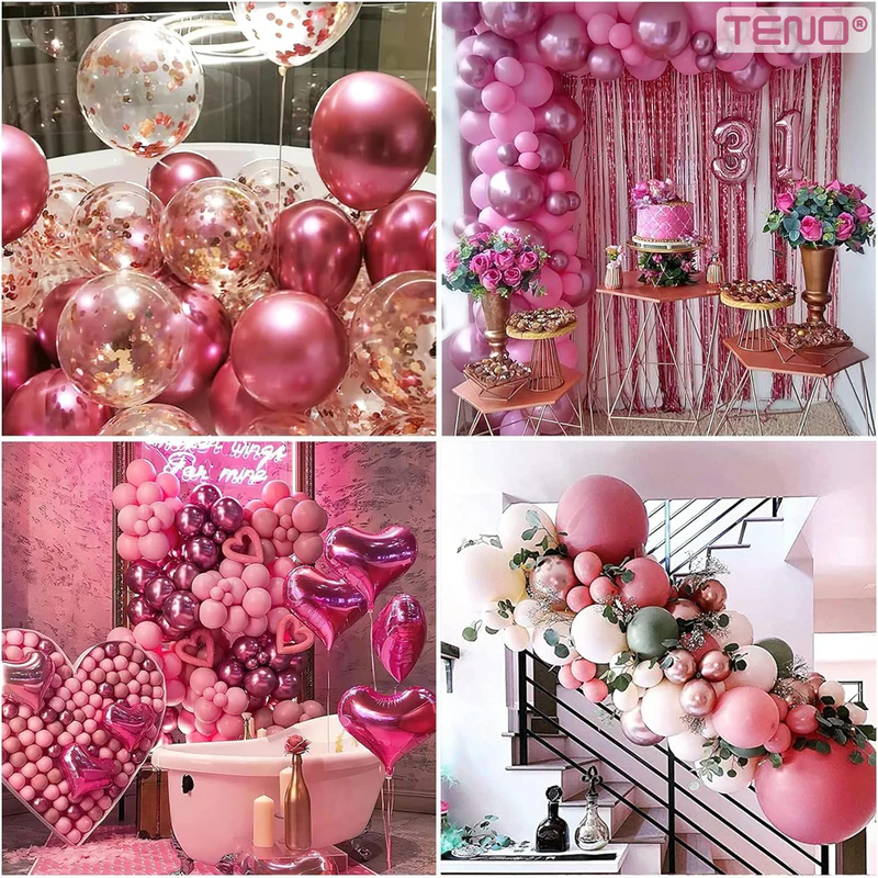 - Culoare: Baloanele au o nuanță de roz, o culoare populară și versatilă, care se potrivește atât pentru evenimente elegante, cât și pentru petreceri mai casual.