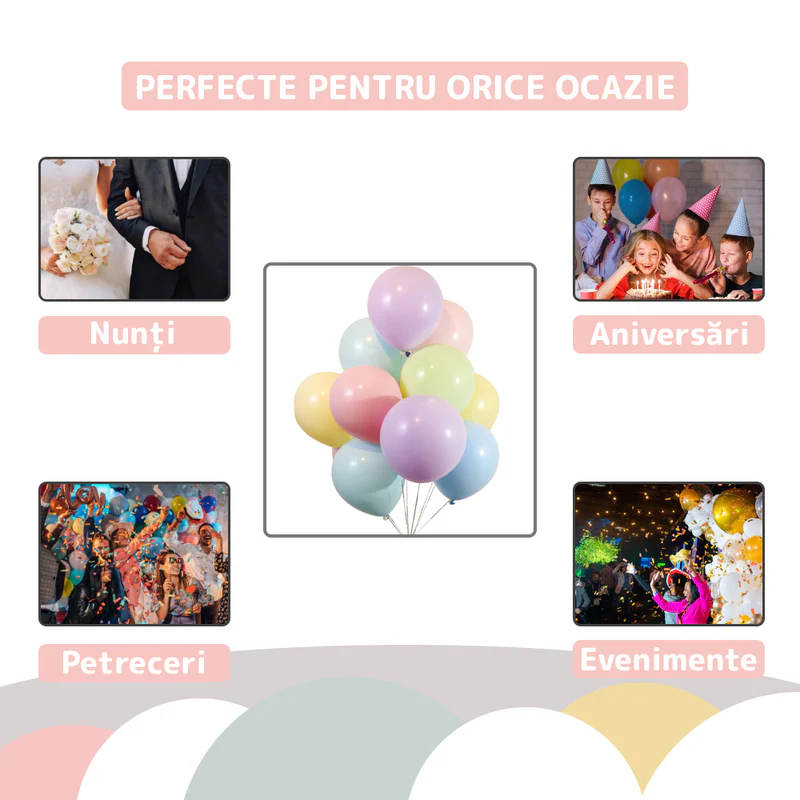 - Perfect pentru decor: Baloanele pot fi folosite pentru a crea arcuri, buchete, sau pur și simplu pentru a decora pereții sau tavanul.